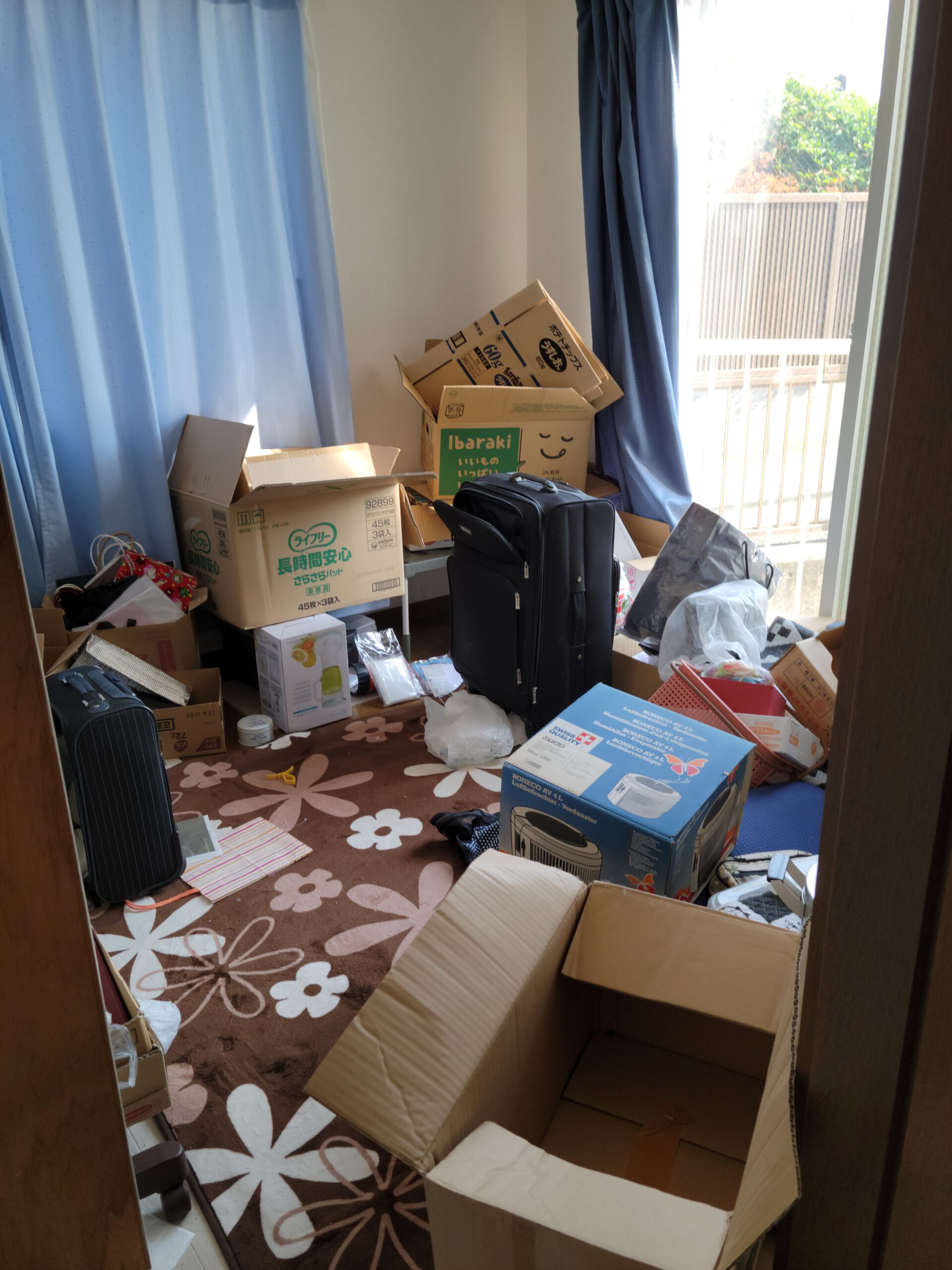 入居時からお荷物が増え廊下、洗面所、お風呂場、キッチン、リビング、寝室に入れない状況で困っていたそうです。